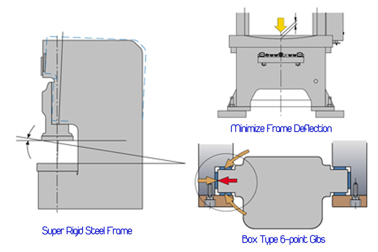 Máy dập Chin Fong OCP-110 được thiết kế để chống lại sự lệch hướng và cung cấp độ chính xác dập. Khung thép được giảm căng thẳng hoàn toàn.